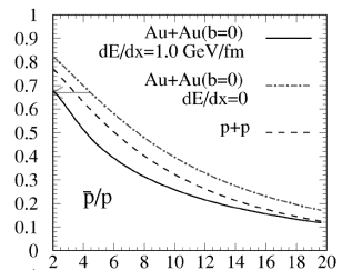 –At high pt, most of antiproton from gluons, while proton from both valence quark and gluon fragmentation.