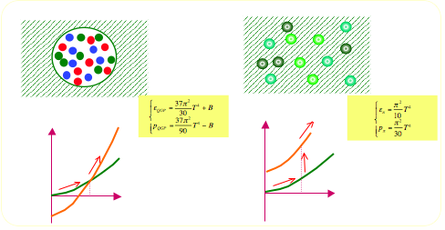 低温ではハドロンガス状態、高温ではQGP状態